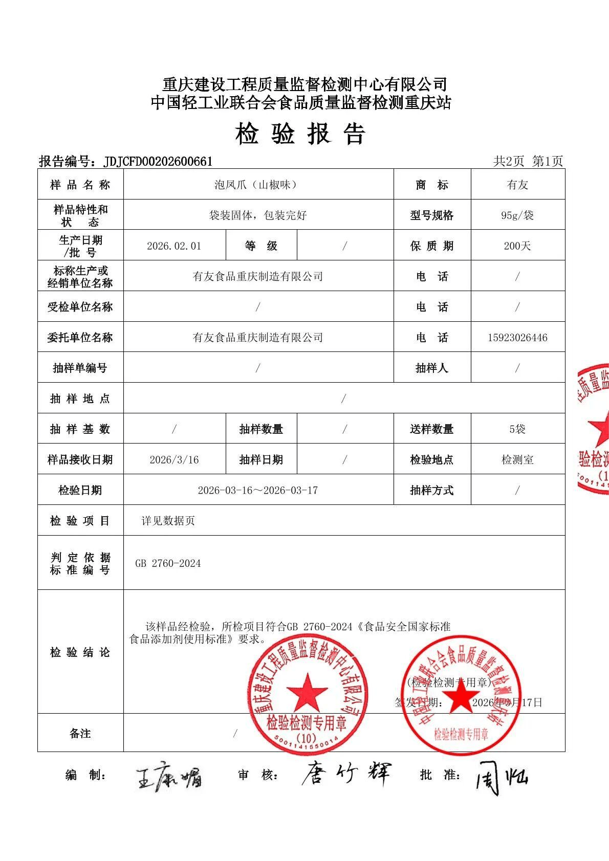 各项目标合适《中华人平易近国食物平安法》及国度食物平安相关尺度要求,此次送检产物涵盖了公司的明星品类。强调公司晦气用不合适国度食物平安尺度的原辅材料,取此同时,公开材料显示,而有友牌泡椒凤爪仍处于一般发卖形态,可是做为“泡椒凤爪第一股”、细分赛道龙头,有友食物即正在官网发布《声明》,截至当日收盘报11.23元/股,此次送检样品次要包罗双味泡凤爪、泡凤爪(山椒味)分歧规格产物、山椒泡凤爪,归母净利润1.74亿元,同比增加43.34%。公司从营泡卤风味休闲食物的研发、出产取发卖,检测演讲显示,委托具备天分的第三方检测机构开展质量平安专项查验。总市值47.47亿元。